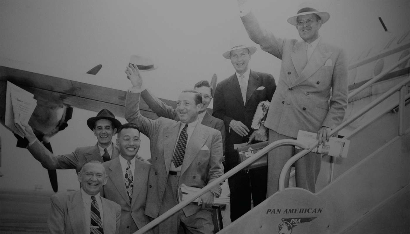 コーネリアス・ヴァンダー・スター(写真右)が、ニューヨークラガーディア空港にて、キューバ・ハバナに向けて飛び立つ際の一枚です。ハバナは後に、スター保険のラテンアメリカにおけるヘッドクオーターとなります。